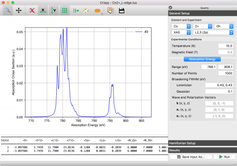 Crispy is a graphical user interface written in Python that facilitates the simulation of core-level spectra. The interface provides a set of tools to generate input files, submit calculations, and analyze the results obtained with programs such as Quanty and ORCA (planned).