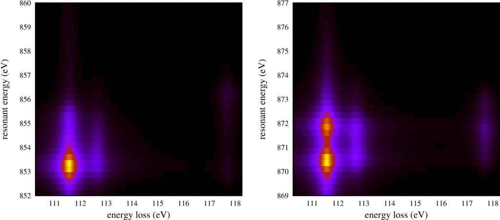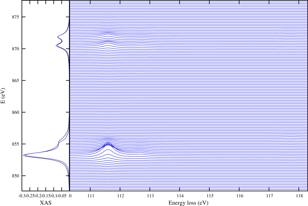 The second plot shows the same RIXS spectra, but now as an intensity map.